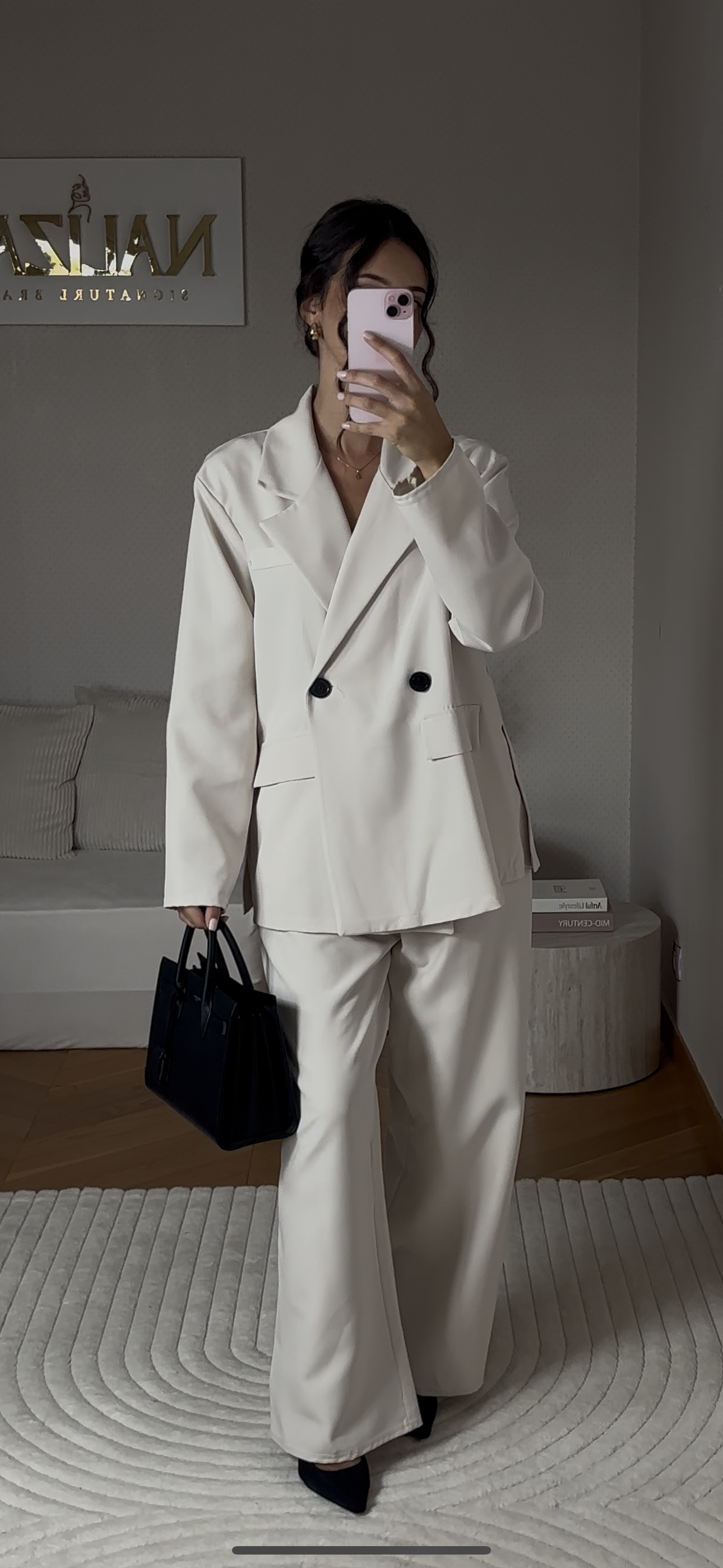 Élégance et modernité se rencontrent dans ce tailleur pantalon beige. Sa veste oversize croisée à double boutonnage et son pantalon fluide dessinent une allure assurée et sophistiquée. Sa teinte claire et lumineuse en fait une pièce forte, parfaite pour un look business chic ou une sortie. Un essentiel du dressing féminin qui allie style, confort et prestance.