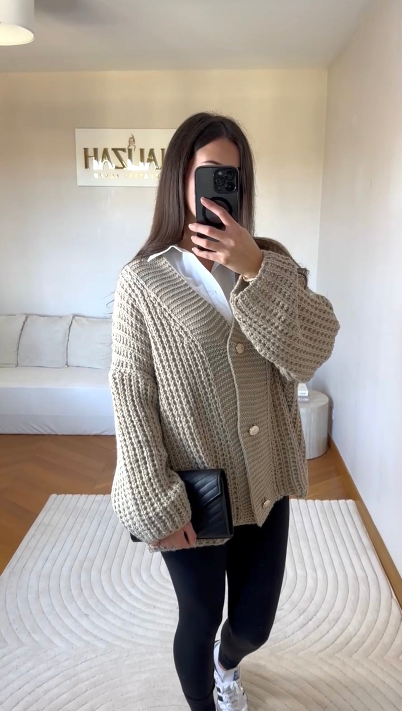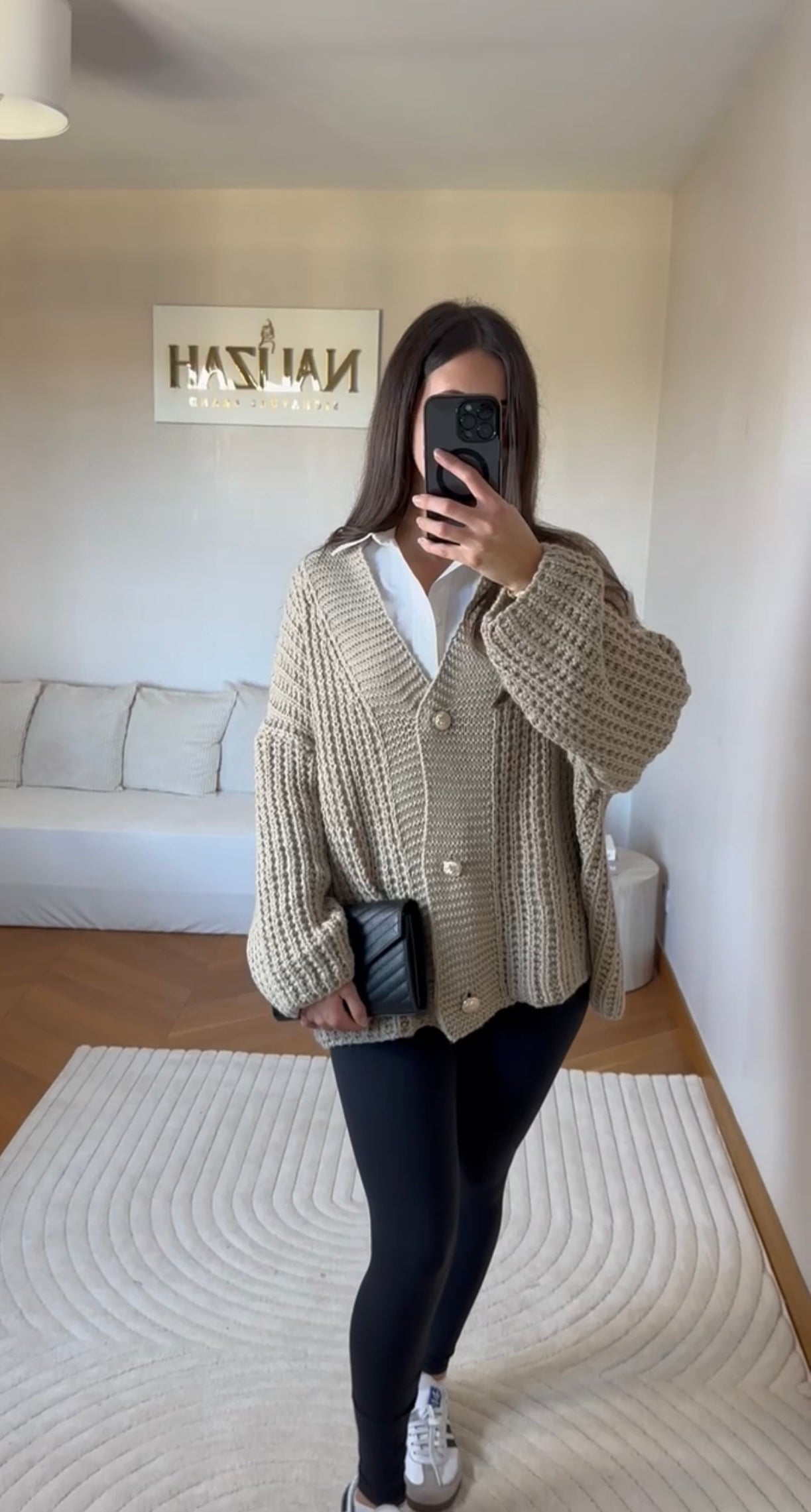 Chaleureux et raffiné, ce gilet cardigan camel en maille épaisse est la pièce cocooning par excellence. Sa coupe oversize, sublimée par des boutons nacrés, offre une allure douce et féminine. Parfait pour réchauffer vos tenues tout en conservant une touche élégante et naturelle.