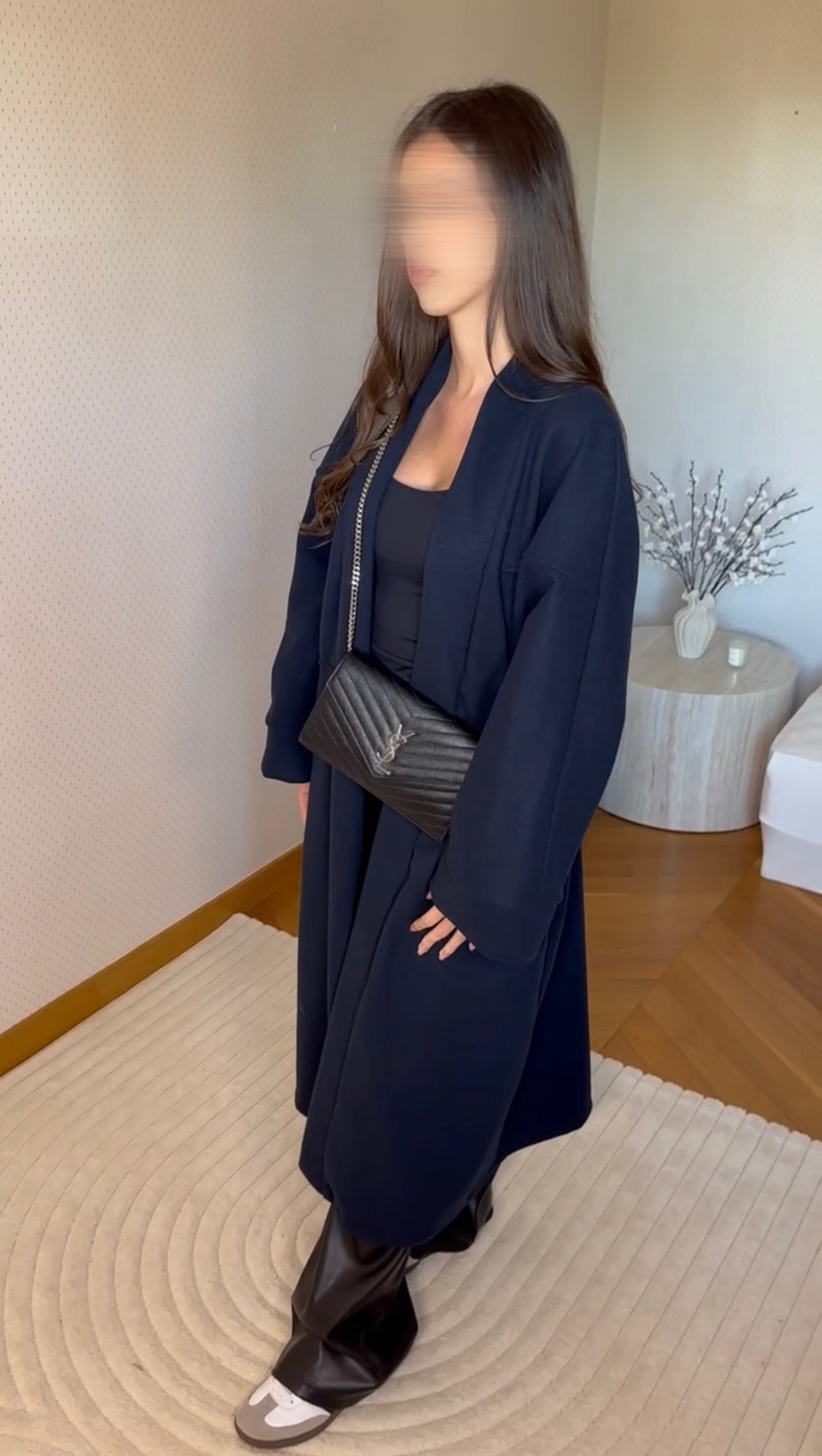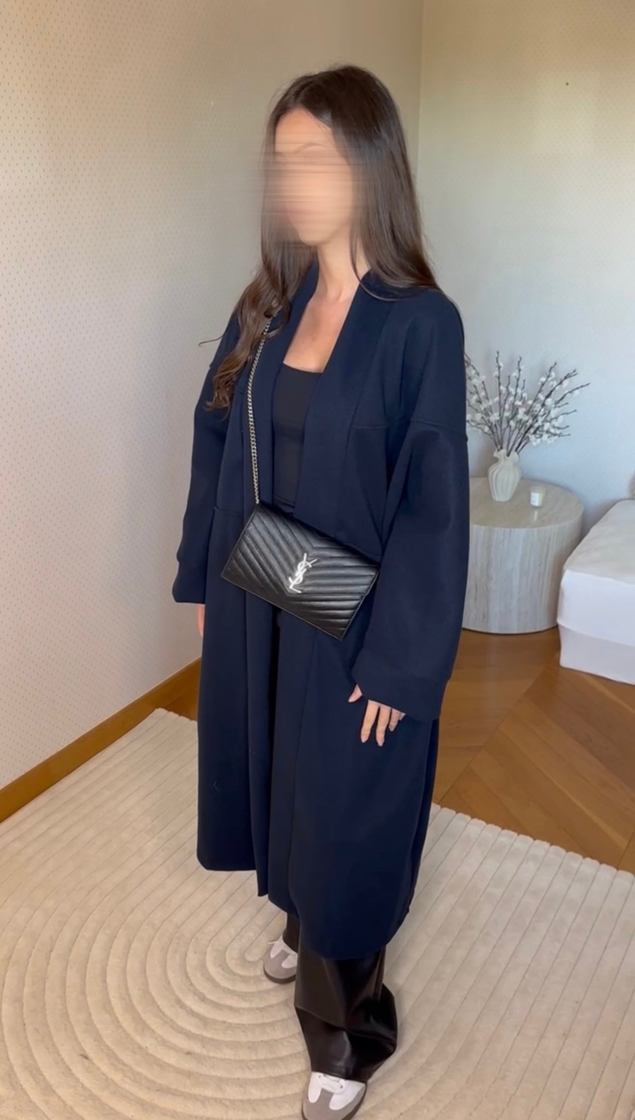 Sobre et raffiné, ce gilet bleu marine adopte une coupe kimono fluide et élégante. Sa matière douce et chaude assure un confort optimal, tandis que ses poches de chaque côté apportent une touche pratique et harmonieuse. Idéal pour un look chic et décontracté à superposer tout au long de la saison.