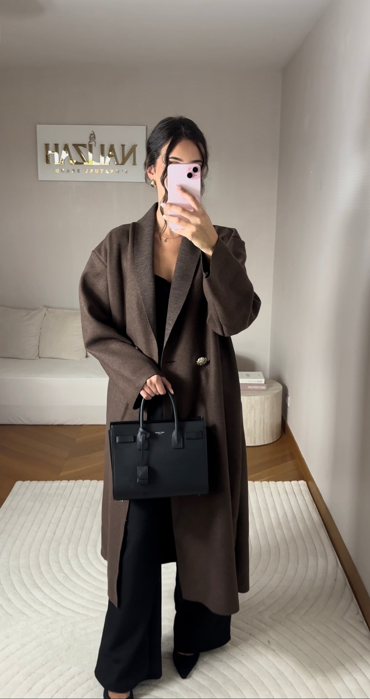 Chaleureux et raffiné, ce manteau long marron allie élégance et confort. Sa coupe ample et son double boutonnage mettent en valeur la silhouette tout en offrant une allure moderne et sophistiquée. Une pièce incontournable du dressing, parfaite pour un look chic et intemporel en toute circonstance.