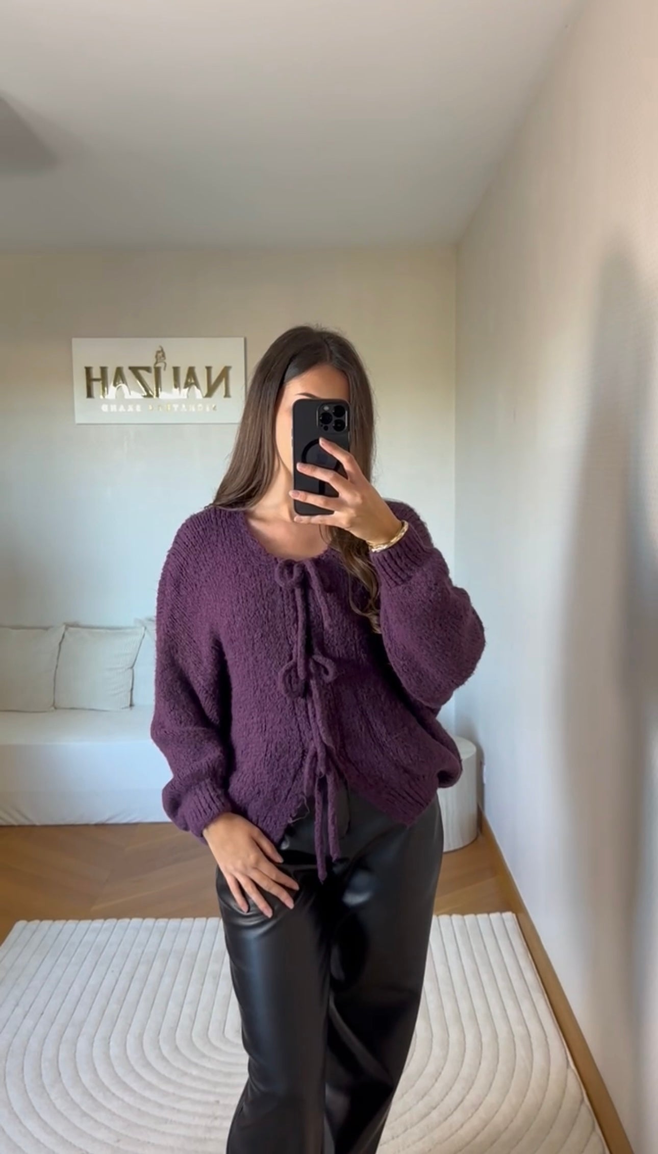 Féminin et audacieux, ce pull violet en maille se distingue par ses jolis nœuds sur le devant qui apportent caractère et élégance. Sa teinte lumineuse et sa texture douce en font une pièce forte du dressing, parfaite pour égayer vos tenues.